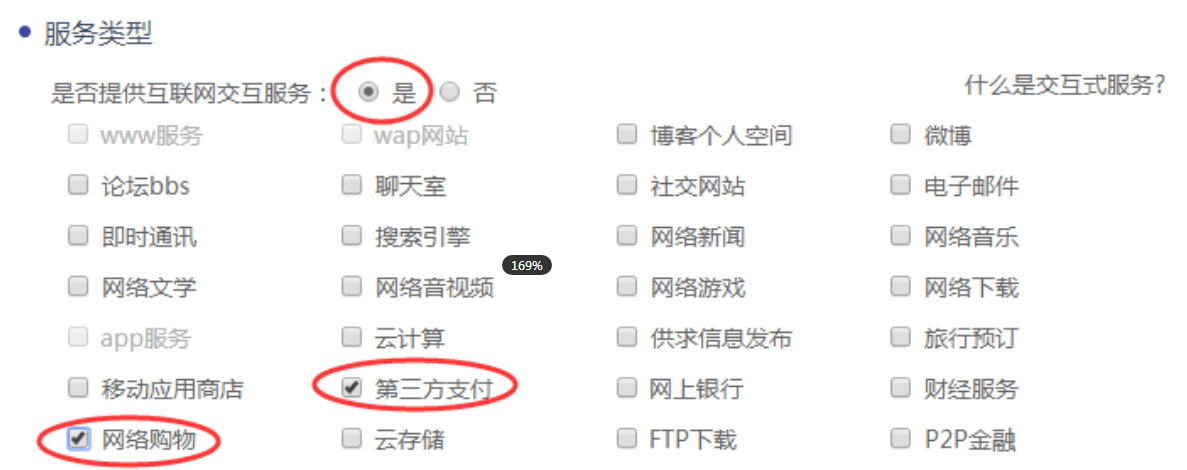 商城网站,选择交互式:勾选第三方支付和网络购物